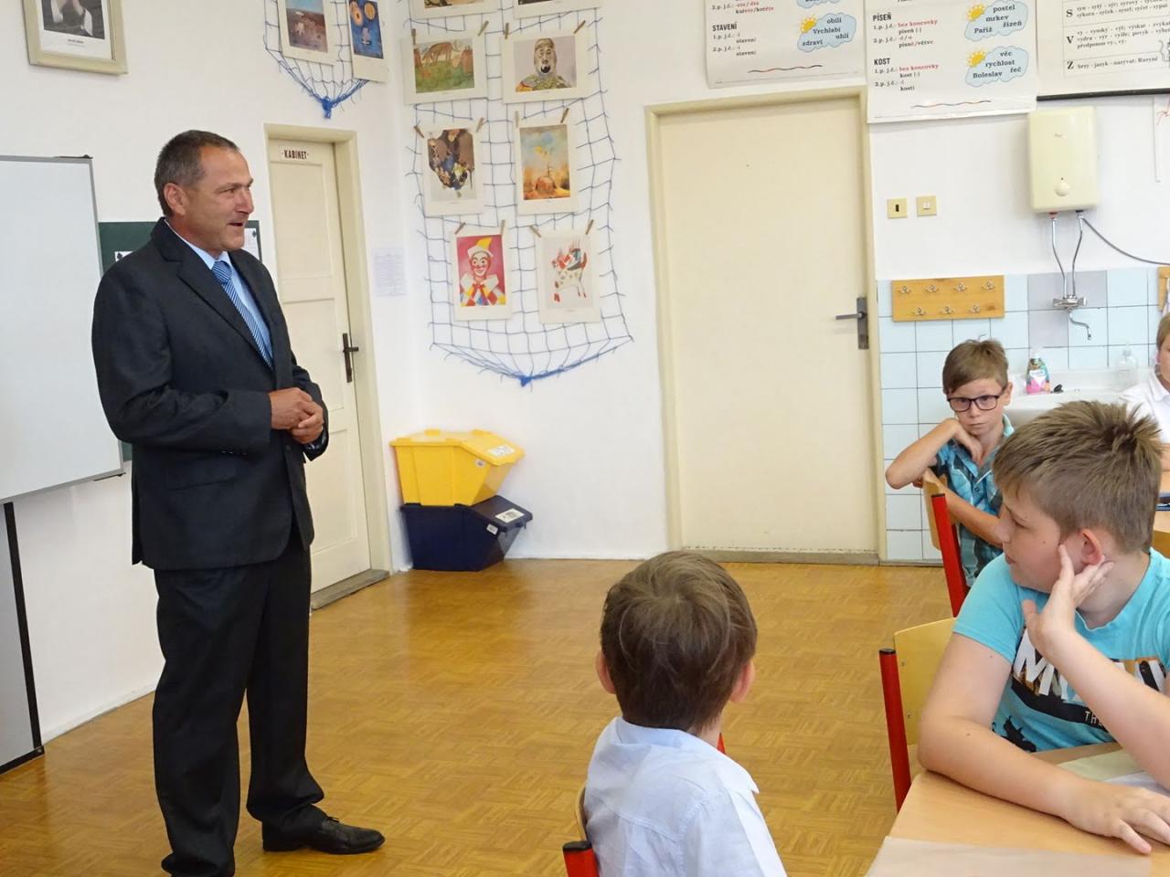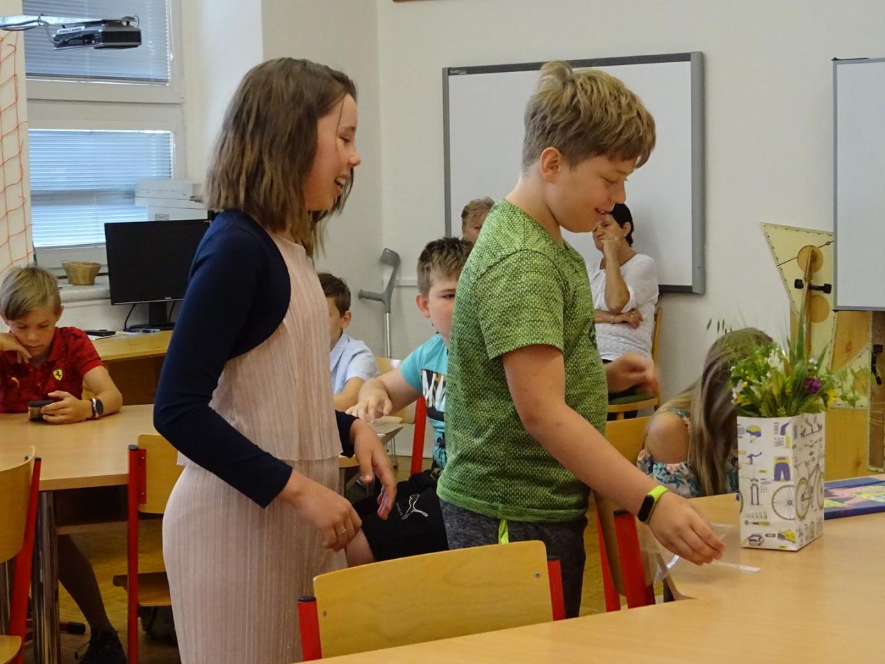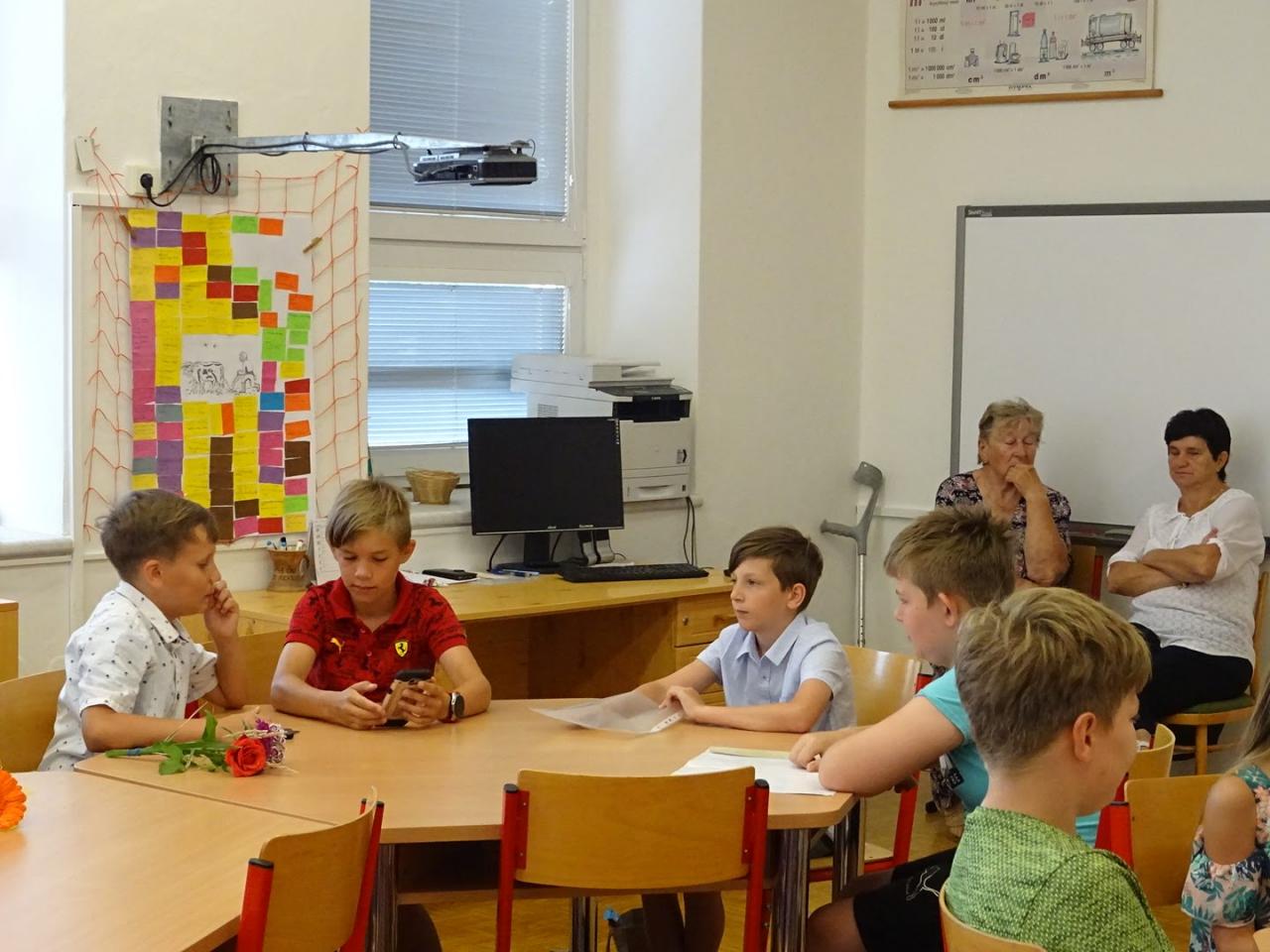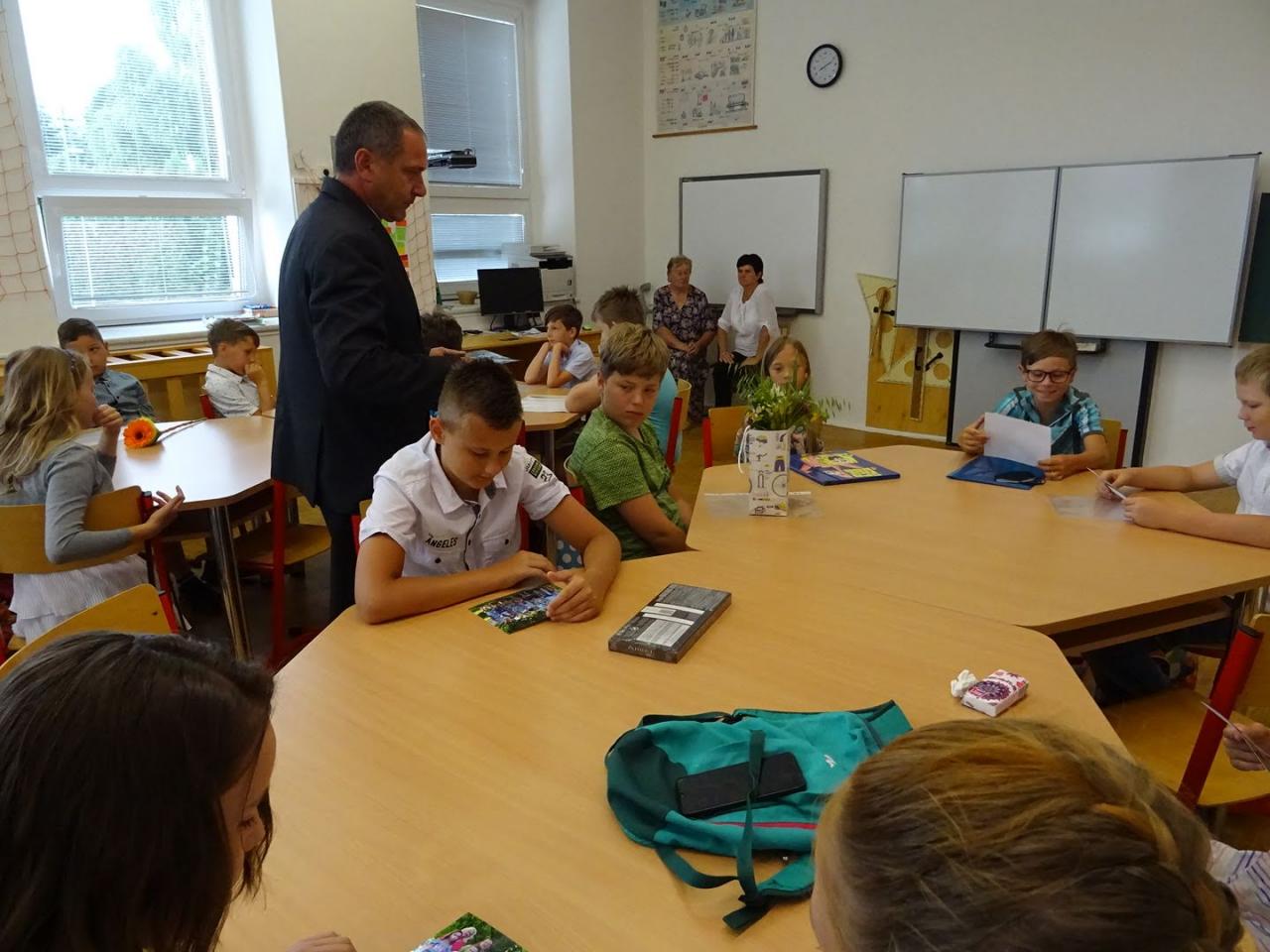 Ukončení školního roku se čtvrťáky a páťáky. Rozloučit se s nimi přišel starosta obce.
