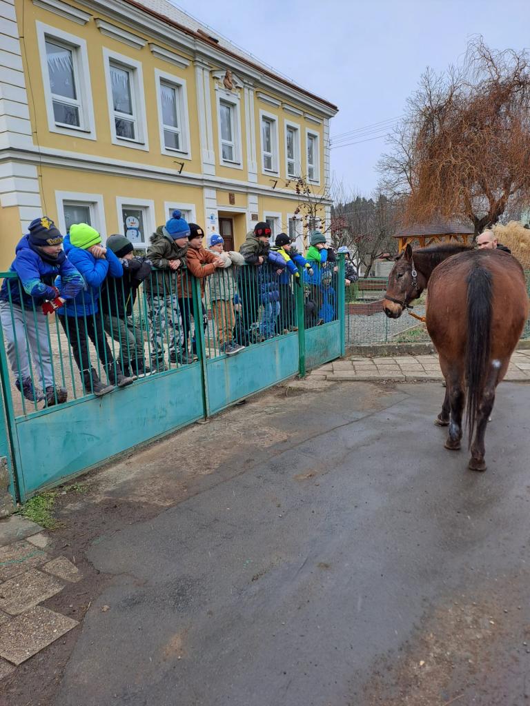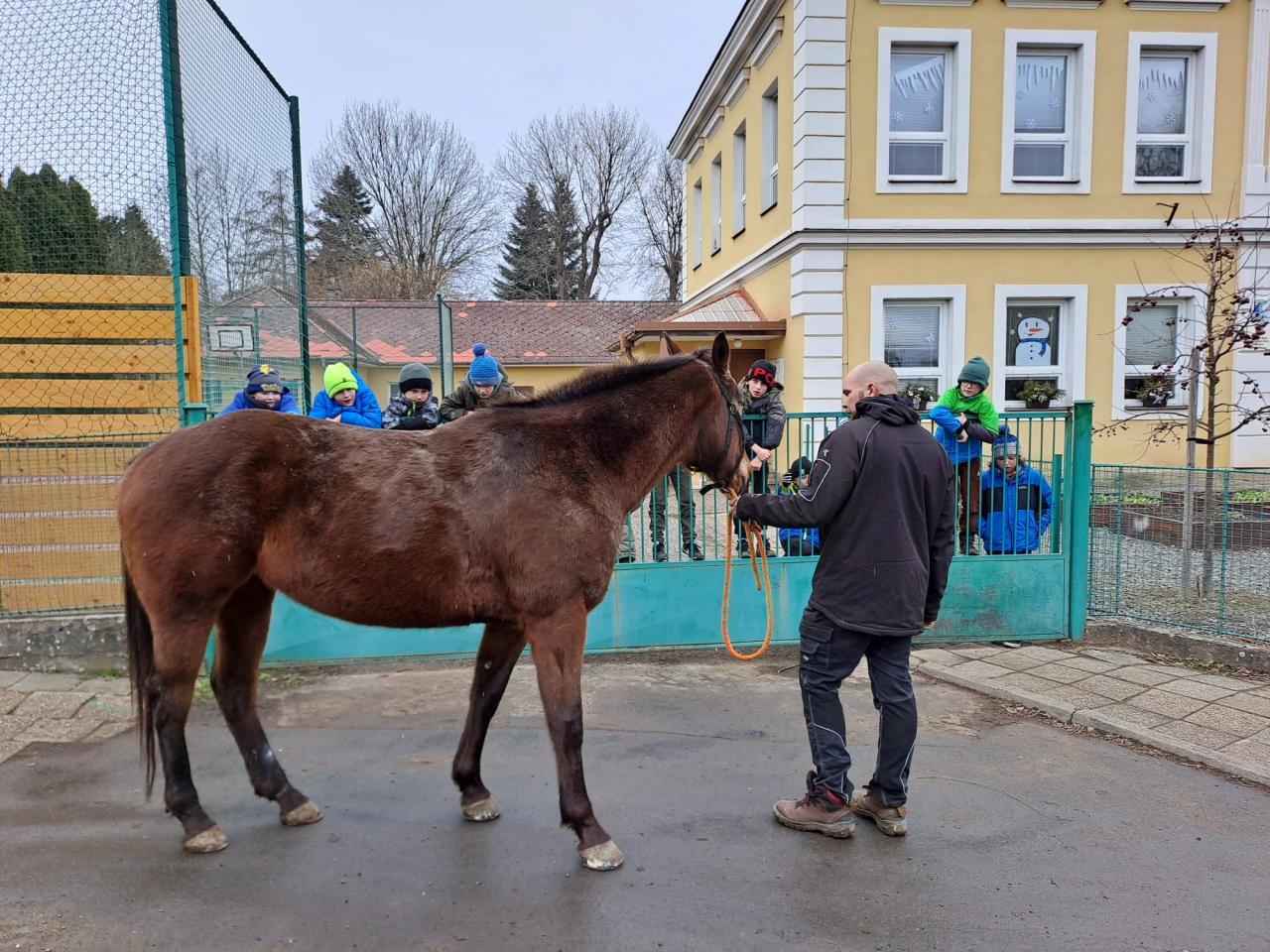 Dnes nás navštívil pan kovář se svým koněm jménem Laskonka. Dozvěděli jsme se mnoho zajímavého o chovu koní - čím se živí, kolik měří, váží, březost koně a mnoho dalšího. Nakonec jsme si vysvětlili, proč nikdy nekrmíme cizí zvířata.