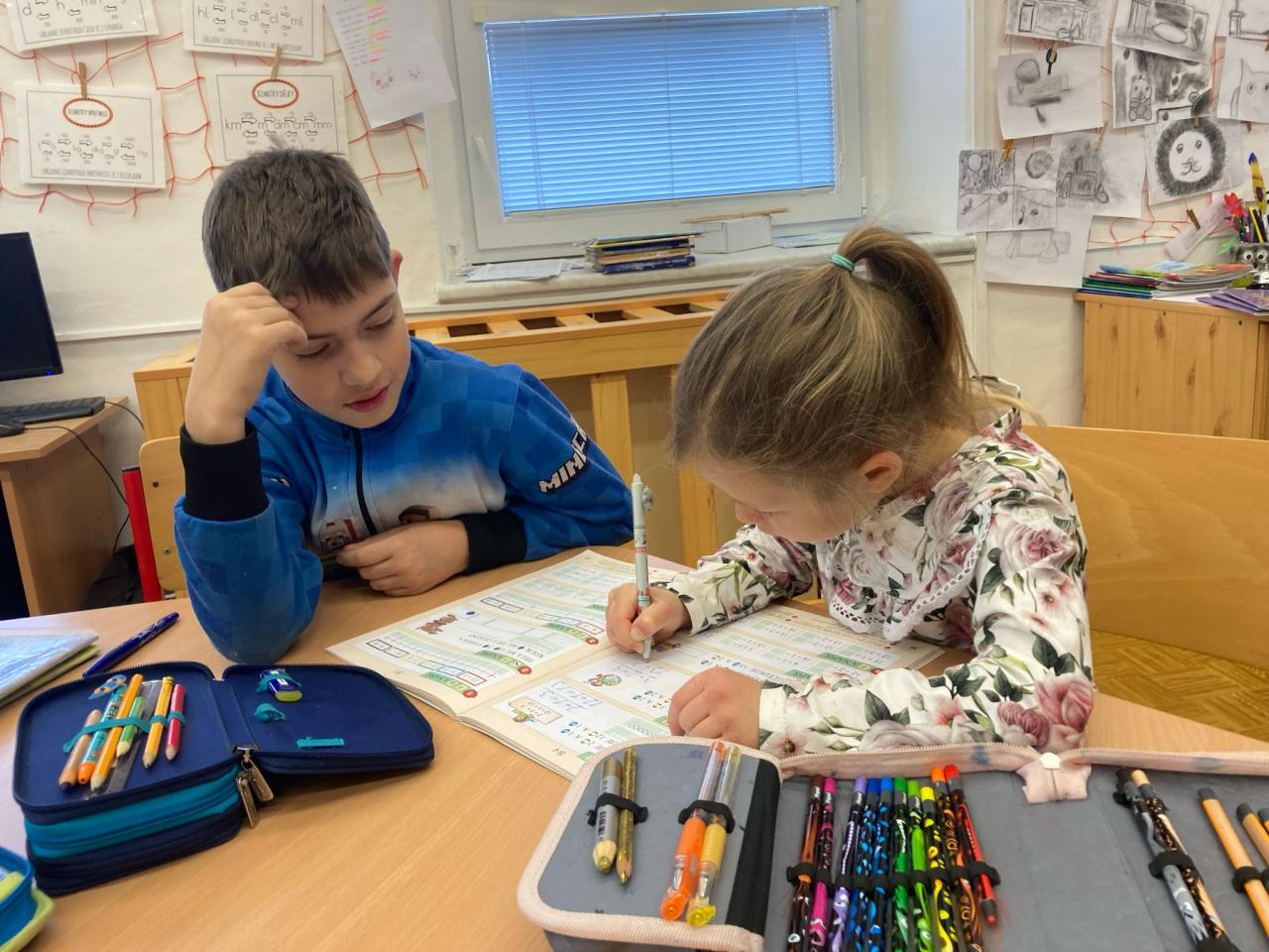 Dnešní matematika byla jiná než obvykle! Čtvrťáci pomáhali prvňáčkům s počítáním a logickými úlohami, zatímco ti se učili od svých starších kamarádů. Společné učení přineslo nejen nové znalosti, ale i radost a spolupráci napříč ročníky.