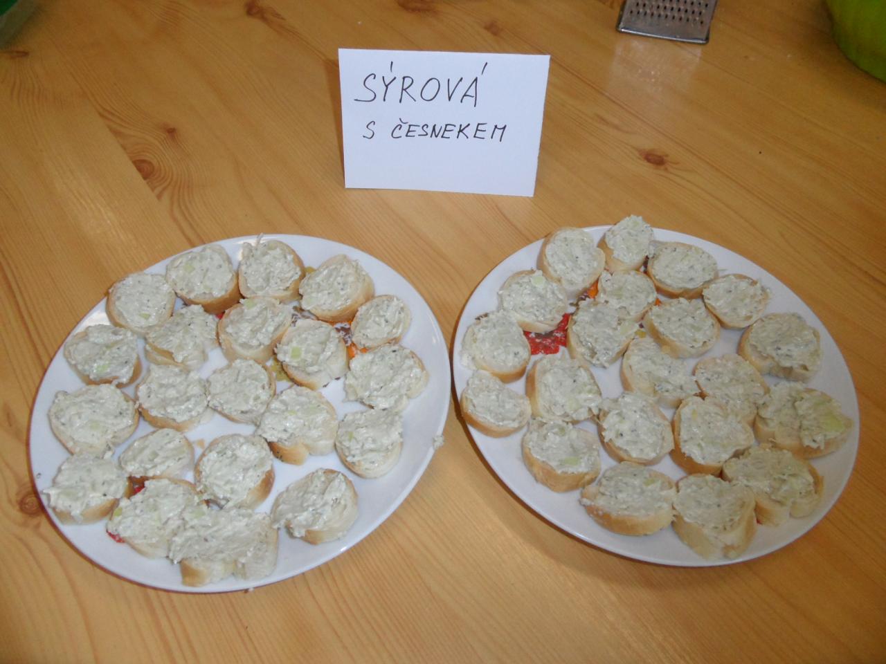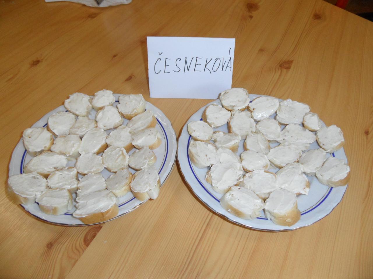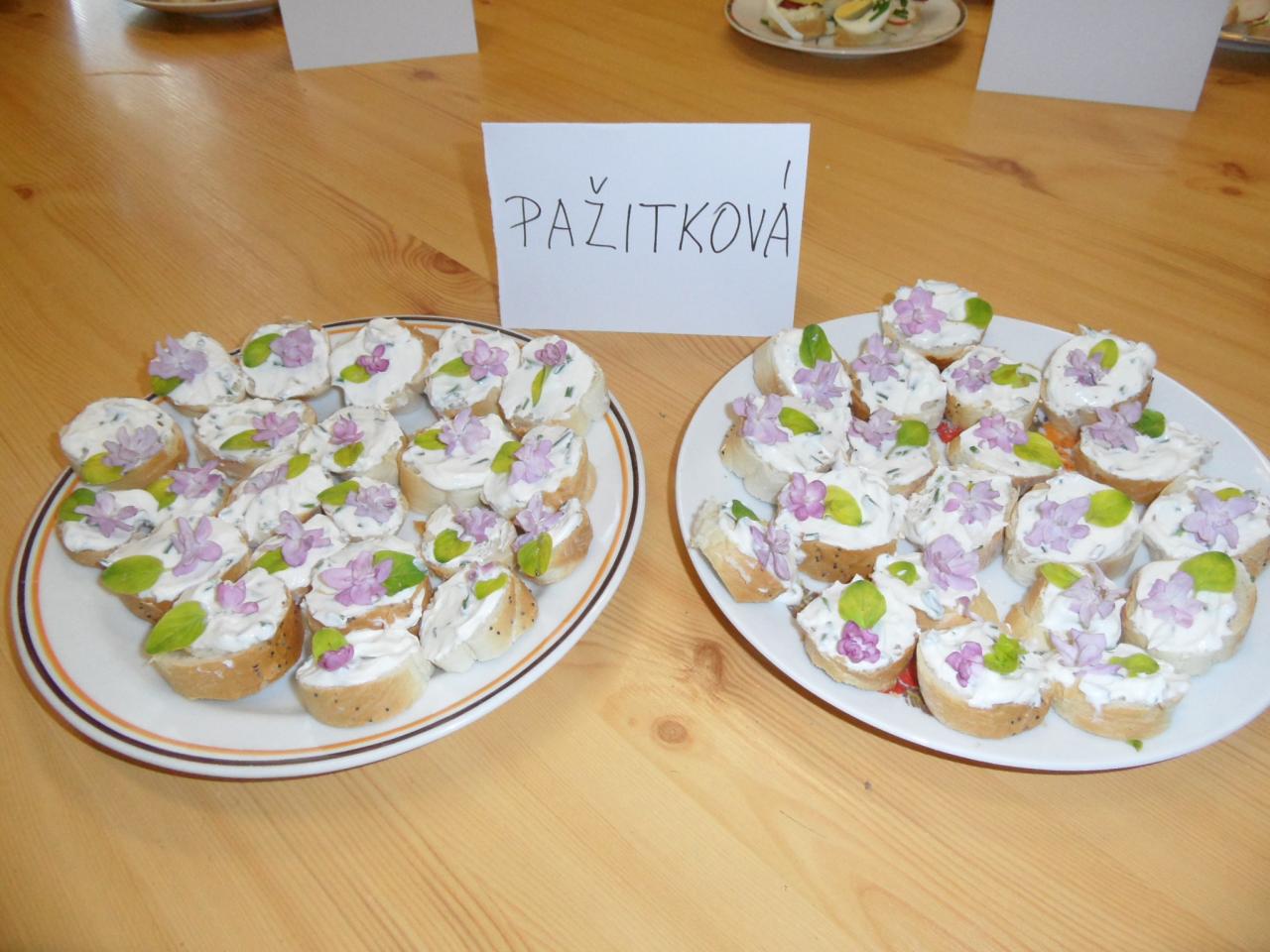 Ochutnávali jsme a zároveň hodnotili pomazánku sýrovou s česnekem, vajíčkovou, pažitkovou a česnekovou. Nejvíce chutnala a vítězem se stala pomazánka pažitková, která zaujala nejen svojí chutí, ale i ozdobou z květů a lístků šeříku.
